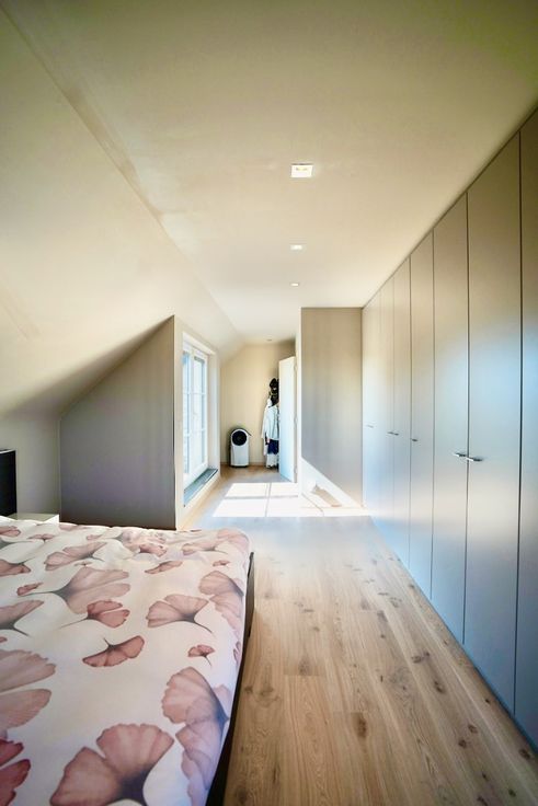 Aan ruimte is hier zeker geen gebrek. Zo vind je 3 ruime lichtrijke slaapkamers op de verdieping waarvan de master voorzien is van een bijhorende dressing en terras. De prachtig afgewerkte badkamer met inloopdouche en ligbad vervolledigen de bovenverdieping. Door de aanbouw aan de keuken is de woning ruimschoots voorzien van opbergplaats. Zo heb je aan de keuken een bijhorende wasplaats en koele bergruimte en heb je een zeer brede inpandige garage die dienst kan doen als bijkomende opslagruimte of ter stalling van jouw wagen.