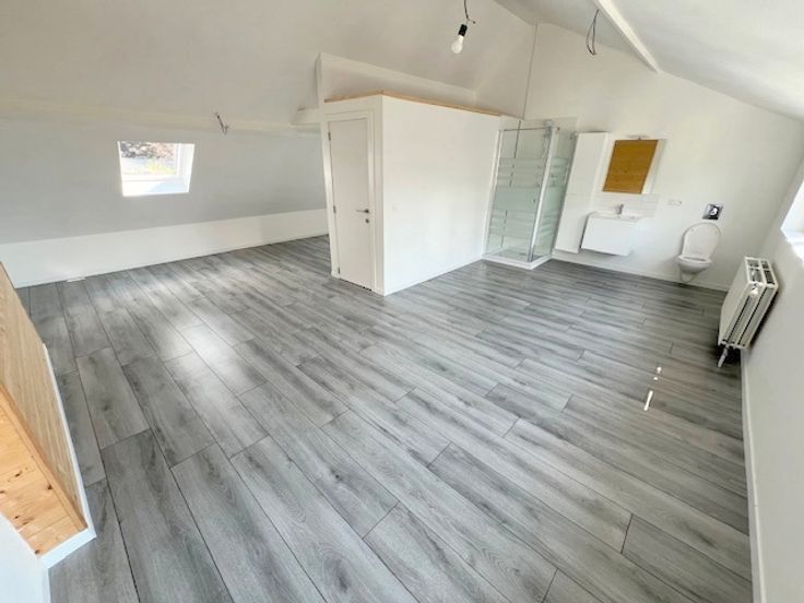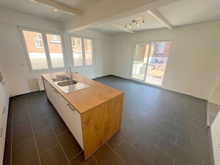 Dans le recherché faubourg de Salzinnes, venez découvrir cette magnifique maison de ville et ses 5 garages entièrement rénovée. L'habitation de type bel-étage accueille 2 garages au rez-de-chaussée ainsi qu'un hall d'entrée avec WC et une pièce polyvalente (buanderie, bureau). Le 1er étage se compose d'un hall de 9m², d'un salon de 13m², d'une salle à manger de 13m², d'une magnifique et vaste cuisine équipée de 27m² (meubles, taque, four, hotte, frigo, congélateur, lave-vaisselle, micro-ondes et évier) ouvrant sur une terrasse carrelée de 6m2, d'une salle de bain (bain, douche, évier, WC et radiateur sèche-serviettes) et d'un bureau. Le hall de nuit du 2ème étage vous mène à deux chambres de 16m² et 23m² avec salle de douche. Le 3ème étage propose une vaste chambre de 43m² avec coin douche (douche, évier et WC). 3 garages indépendants complètent l'ensemble. Travaux réalisés en 2023 : Châssis en PVC double vitrage , chauffage central au gaz de ville, électricité certifiée conforme, cuisine, salles de douche, revêtements de sol, crépis, portes de garage et allée de garage en béton. Toiture en éternit isolée. Excellent PEB de classe A. Ce vaste bien convient pour famille nombreuse, colocation, profession libérale ou indépendant. Document et prix informatifs et non contractuels.