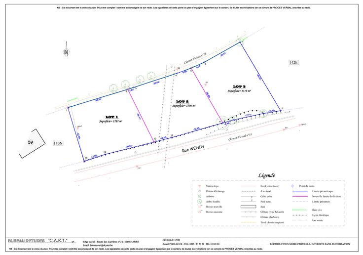 SUPERFICIE : parcelle 1657A : +/- 1282m² ; parcelle 1657B : +/- 1390m² .