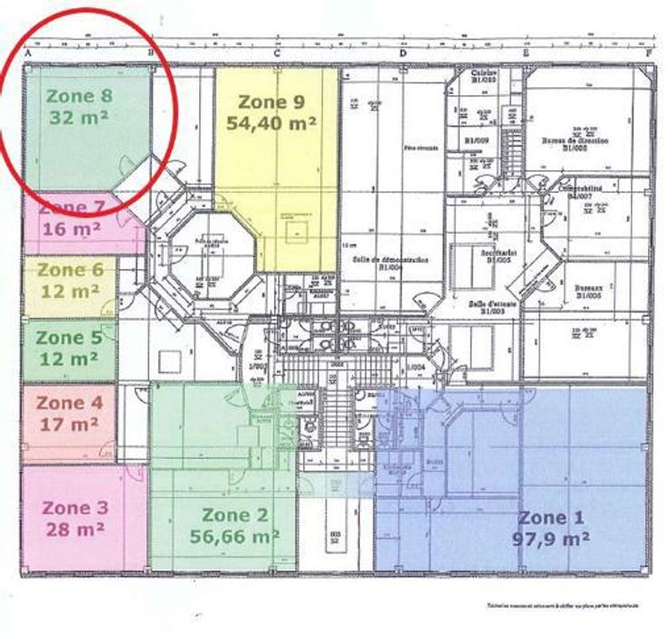 Zoning Nord de Wavre : Très beau bureau de 32 m² (zone 8 sur le plan) dans un espace partagé de style "coworking" multi entreprises --> Idéal pour 2 personnes | Dans un immeuble complètement rénové avec goût | plancher au sol, faut plafond | Stores aux fenêtres | Informatique ultra rapide | places de parking privative | Loyer + 2 places parking + charges all in = 800 €. Les charges ALL IN comprennent - le chauffage, l'eau, l'électricité (150 Kwh/mois), le précompte immobilier, l'assurance du bâtiment, l'entretien des locaux (une fois semaine, 48 semaines par an), des communs et de l'extérieur, l'enlèvement des poubelles papier et ménagères , l'entretien de l'alarme (zone d'alarme propre), le Wifi, un téléphone relié au téléphone de l'entrée pour vos visiteurs , accès à une kitchenette et sanitaires communs, accès à une salle de réunion octogonale de 15 m², hall d'attente pour visiteur, possibilité de réceptionner des colis pour vous, parking visiteurs et parking nominatif, local Vélo à disposition, bornes électriques à disposition, photocopieuse à disposition