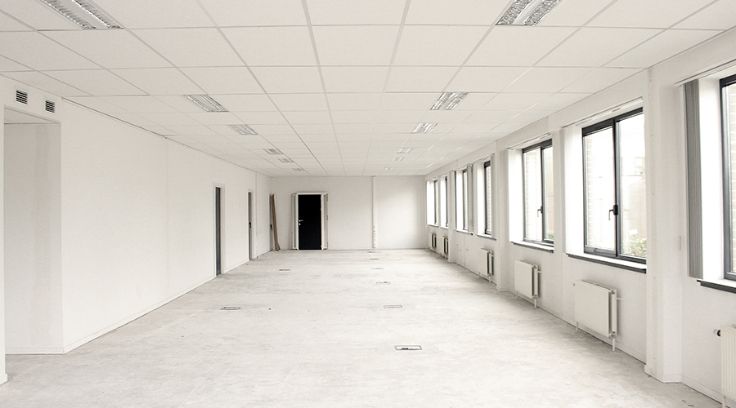 Voorzien van kabelgoten, verlaagd plafond en vasttapijt. Private toiletten.