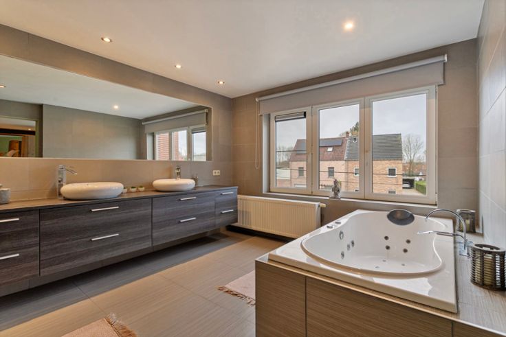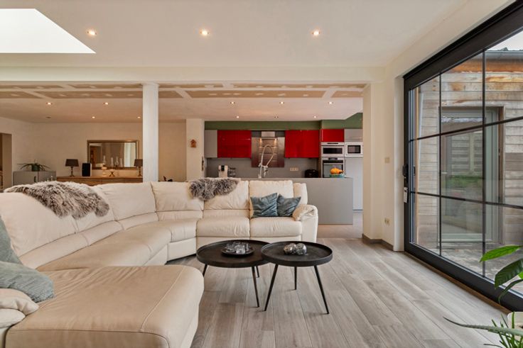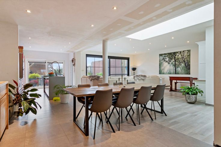 In Ophasselt (Geraardsbergen) staat een prachtig gerenoveerde woning te koop, ideaal voor wie op zoek is naar een ruime leefruimte. Elke slaapkamer is voorzien van een eigen badkamer. De buitenruimte is stijlvol aangelegd met diverse terrassen, een strakke en verwarmde zwemvijver (22,5 m²), twee terrassen (42 m² en 15 m²), en een tuinhuis. Vanuit de woning is er een fraai uitzicht op de aangrenzende velden.