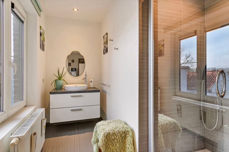 De hal op de eerste verdieping en één douchekamer vereisen nog wat afwerking. De elektriciteit is conform met 24 zonnepanelen, elk met een vermogen van 325 Wp.