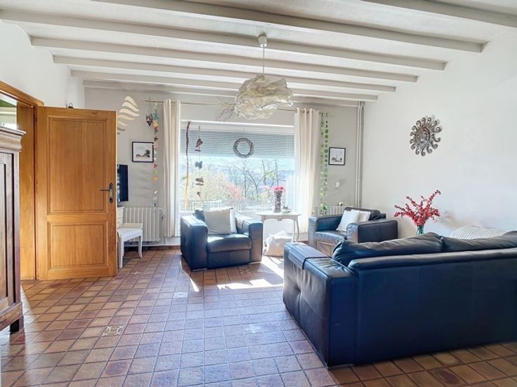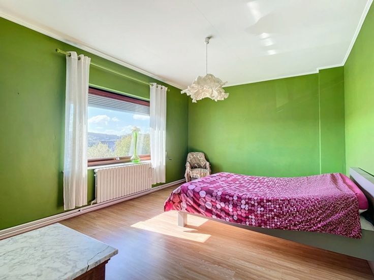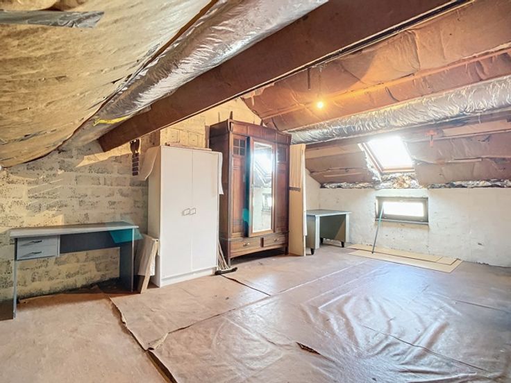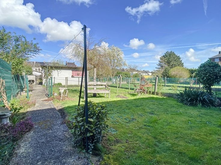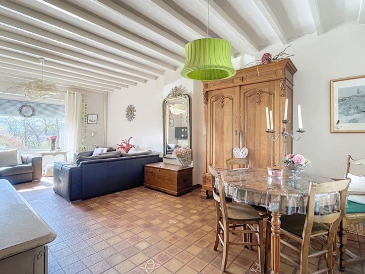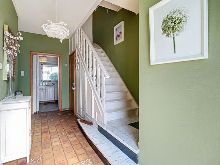 Elle se compose, au rez-de-chaussée, d’un hall d’entrée, d'un WC indépendant, d’une cuisine semi-équipée et d'un vaste séjour. Au 1er étage, un hall de nuit dessert 2 chambres à coucher, un dressing et une salle de bains. Au 2ème étage, vous trouverez une 3e chambre à coucher et un grenier aménageable selon les besoins. Cette maison dispose également de caves, d’un garage avec porte motorisée, d’une terrasse couverte et d'un jardin clôturé avec abris.