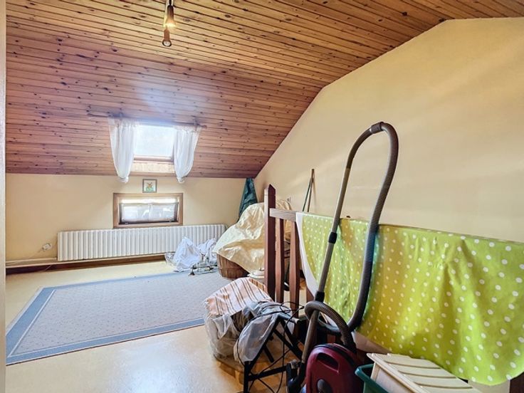 Postes techniques : Châssis bois DV avec volets manuels, climatisation, chauffage central au mazout, toiture isolée, citerne d'eau de pluie, PEB C...
