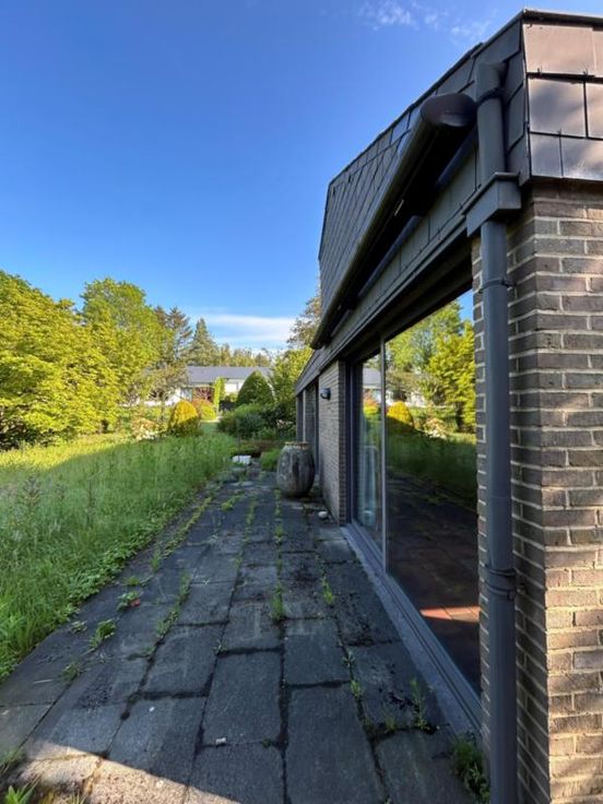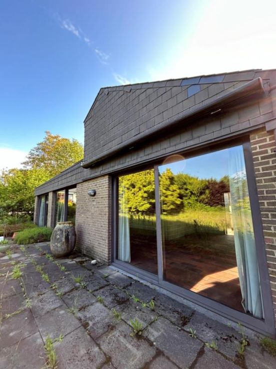 VENDU!!!!!Villa d'architecte construite dans les années 80 située dans un quartier calme du village de Plainevaux. Elle se compose au rez-de-chaussée d'un hall d'entrée avec vestiaire et WC indépendant, de deux pièces à l'avant (bureaux de 10,8 et 16 m²), d'un spacieux et lumineux séjour de 42 m² donnant sur le jardin, d'une chambre de 15 m² à l'arrière également, d'une cuisine équipée (avec placards) et d'une arrière cuisine de 4 m² (buanderie). Au premier étage, un hall de nuit dessert deux chambres mansardées et une salle de douche, ainsi que des combles. Au sous-sol : un garage deux voitures, une cave et un espace chaufferie. Extérieurs : terrasse arrière avec passage latéral, grand jardin, allée de garage et allée menant à la porte d'e e central au mazout (citerne 3.600 litres). Electricité à remettre en conformité. PEB : E. RC : 1.400 €. Vente soumise à autorisation de la Justice de Paix (administration de biens). A découvrir !