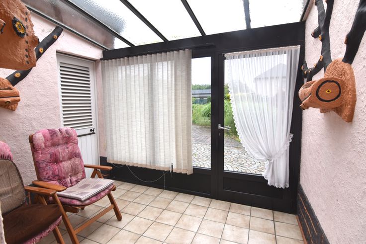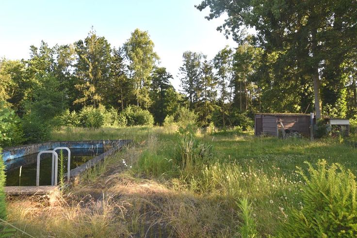 Achteraan is de tuin gelegen in recreatiegebied er is nog een oud zwembad en houten tuinhuis.Vernieuwd dak.