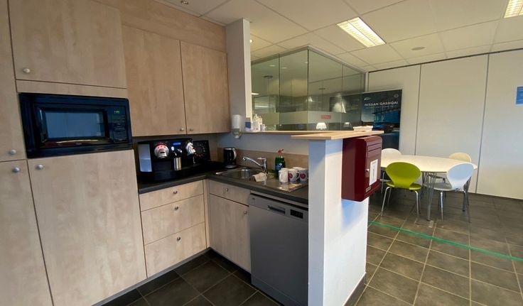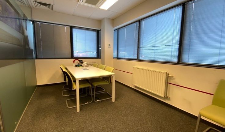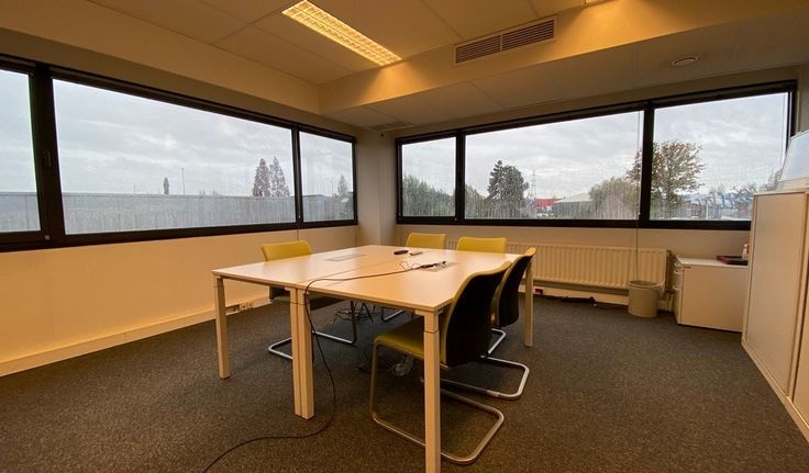 Specificaties: volledig ingedeeld kantoorgebouw, pvc schrijnwerk met dubbel glas, binnenzonwering, opengaande ramen, verlaagd plafond met inbouw tl-armaturen, vasttapijt en keramische tegelvloer, privatief sanitair, douche, keuken met refter, databekabeling, cv op gas, airco, mechanische ventilatie, videofoon, toegangscontrole met badges, inbraakalarm, lift, terras op 1ste verdieping, ruime parking, laadpalen
