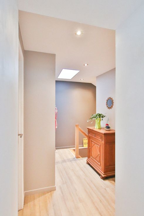 Au 1er: Un beau hall de nuit desservant deux chambres de 6.74 et 14.96 m² et une salle de douche.
