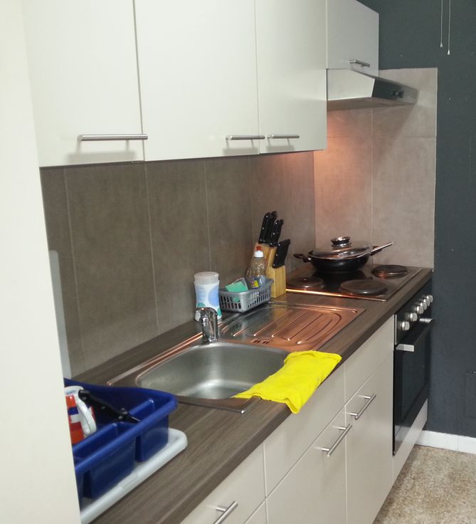 Vraagprijs 195000€ per appartement en 18500€ per garage.