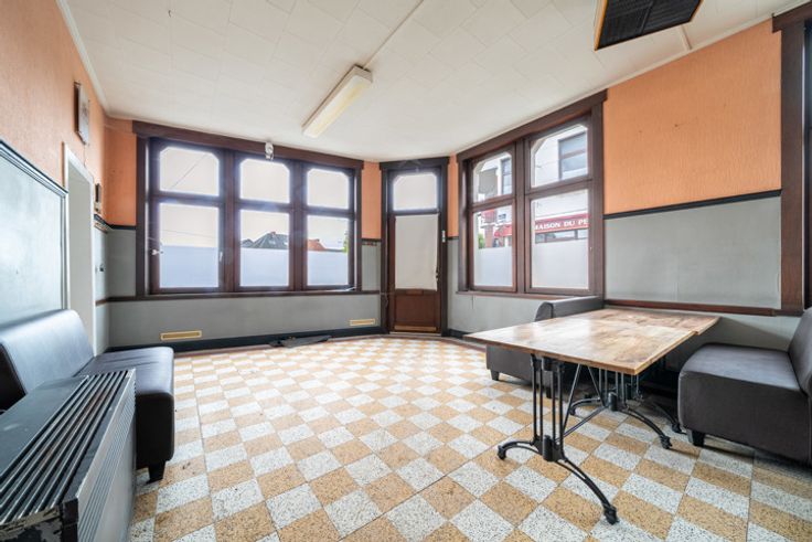 Stratégiquement située dans le centre de Frameries, L'agence Leclercq vous propose cette vaste maison de commerce, dont les grands volumes permettent d'envisager toutes sortes de projets. Situé à proximité d'une place offrant de nombreux emplacements de stationnement, le bien se compose comme suit :  Au rez-de-chaussée : en entrant vous découvrez l'ancienne salle du café, d'environ 40 m². Dans la continuité se trouvent une salle polyvalente, un espace cuisine, un débarras et des toilettes.  A l'extérieur : une vaste cour couverte. Au 1er étage : un appartement composé d'un beau living, une salle à manger, ainsi qu'une chambre jouxtant la salle de bains.  Enfin, ce bien est complété par un grenier (environ 45m²) entièrement exploitable, et deux caves de stockage.  Caractéristiques : convecteurs gaz - libre d'occupation et de brasserie - châssis double vitrage (bois/ PVC). PEB (appartement) "F" - soit 488 kWh/m².an - consommation théorique totale d'énergie primaire 62.874 kWh/an - N°20240705020307 BEAU POTENTIEL - Nombreuses possibilités d'aménagement. Bien référencé 6072382 Vous avez la possibilité de prendre rendez-vous pour une visite (24h/24h) directement sur notre site : www.immo-leclercq.com Publicité à caractère non contractuel et ne constituant pas une offre. Les propriétaires se réservent le droit de décision, d'acceptation ou non sur toute(s) offre(s) soumise(s) pour leur bien.