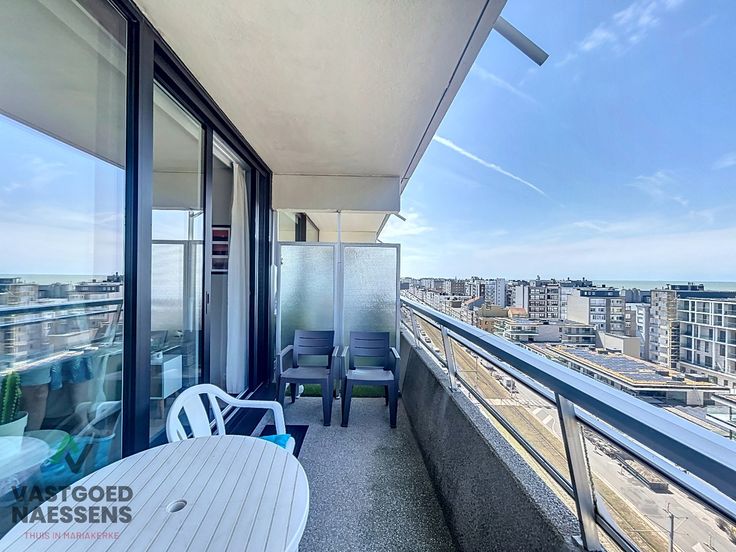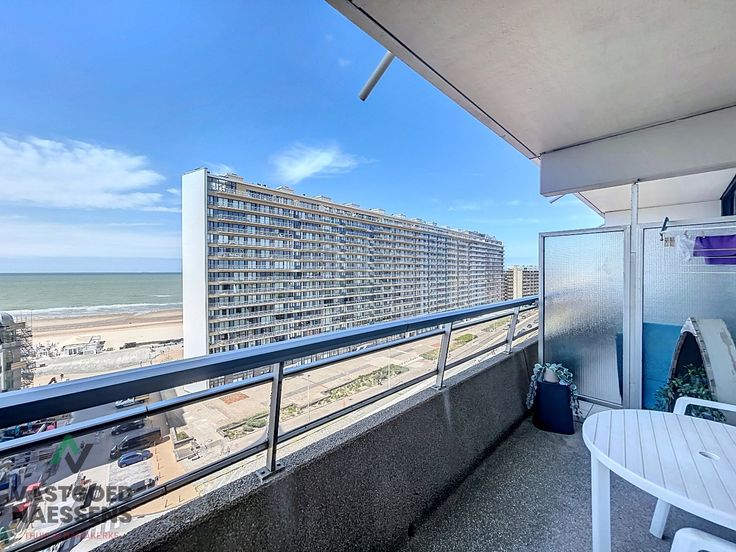 Deze instapklare studio is gelegen op de 10de verdieping van de residentie "Royal Ascot". De residentie bevindt zich op wandelafstand van de Zeedijk en is dan ook uitermate goed gelegen. De studio is als volgt ingedeeld: U komt binnen in de ruime inkomhal met voldoende bergruimte die doorloopt naar de lichtrijke woonkamer en de open keuken. Een geweldig terras vanwaar u een schitterend zicht op zee heeft en de badkamer die men kan bereiken via de inkomhall beschikt over een douche. De residentie is goed onderhouden (verwarming werd vernieuwd, dak werd vernieuwd, nieuwe liften,..), heeft een ruime fietsenberging en bevindt zich op de rand van Oostende-Mariakerke, vlakbij Wellington Golf, Kinepolis, supermarkt,....