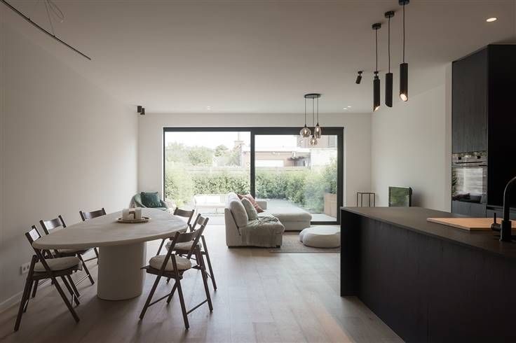 Op een rustige locatie gelegen, hoogwaardig afgewerkte en energiebewuste (E-peil: E7) nieuwbouwwoning (GBB). De beelden spreken voor zich! Echt een pareltje! Er werd voor de afwerking van de woning gekozen voor kwalitatieve materialen, zoals o.a. parket en maatwerkkeuken en -badkamermeubel. Verder werd de woning volledig geschilderd en voorzien van lichtarmaturen (inbegrepen). Wat moet U zelf nog doen? Wel, verhuizen. Gelijkvloers vinden we de inkomhal (met gastentoilet), langs dewelke we toegang krijgen tot de garage en de ruime, lichtrijke leefruimte met open keuken. Aansluitend aan de volledige uitgeruste maatwerkkeuken hebben we nog een berging (met aansluitingen voor wasmachine en droogkast). Op de eerste verdieping geeft de nachthal ons toegang tot een bureau, de badkamer (met inloopdouche, ligbad, maatwerkmeubel), een apart toilet en drie volwaardige slaapkamers, respectievelijk 14,66m², 10,50m² en 10,50m². Daarnaast zijn op de zolderverdieping ook alle voorzieningen aanwezig om hier nog een extra slaapkamer met en suite badkamer te creëren. Tenslotte beschikt de woning achteraan over een tuin met terras. Opgelet! Het betreft hier de verkoop van een nieuwbouwwoning, welke geschiedt onder het BTW-stelsel (tarief: 21%). Het grondaandeel bedraagt € 225.000,00 (te vermeerderen met de registratiebelasting) en de prijs van de constructies € 310.000,00 (te vermeerderen met de B