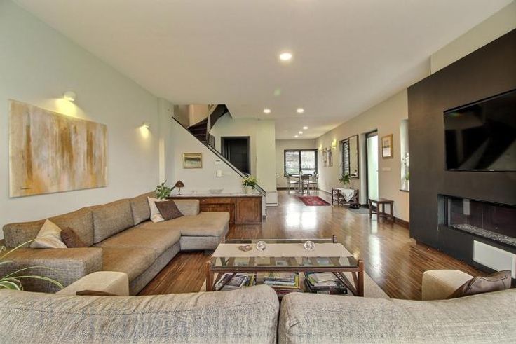 On the second floor: A very large bedroom with built-in bookcase, divided into two bedroom/office spaces, a separate toilet.