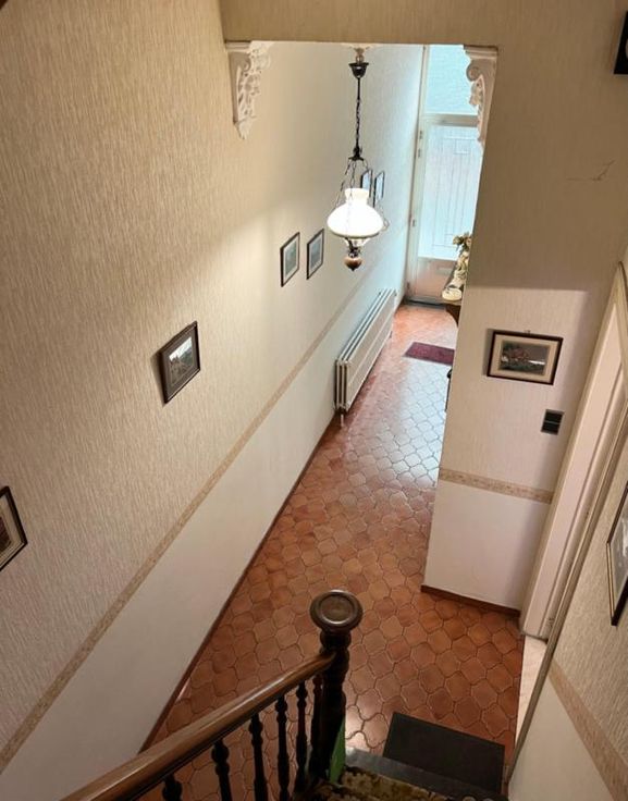 Maison 4 chambres composée d'un hall d'entrée menant à la salle à manger, le salon et la cuisine. La cuisine ayant accès à l'annexe et à la cour. Une salle de douche est également présente au rez-de-chaussée. Au premier étage, 2 chambres et une salle de bain. Au deuxième étage, 2 chambres.