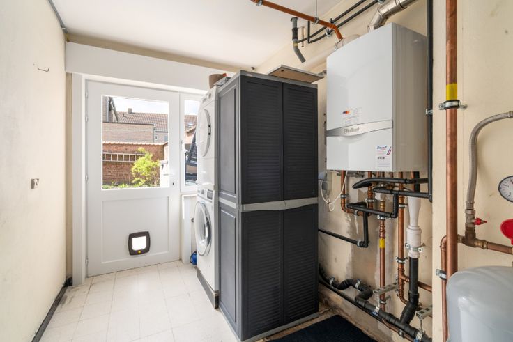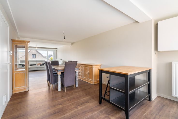 Ontdek deze verzorgde en vernieuwde rijwoning gelegen te Bredene in de Groenendijkstraat. Met zijn ideale ligging op wandelafstand van het strand en in de nabijheid van de bruisende wijk Oosteroever, biedt deze woning het beste van de Belgische kustervaring. Tevens is de dorpskern van Bredene vlot te bereiken en is openbaar vervoer op wandelafstand! Als u de straat uitrijdt komt u letterlijk uit op de duinen van Bredene! Deze rijwoning met garage (bewoonbare oppervlakte: 163 m²) met gunstig EPC-label B bestaat op het gelijkvloers uit een ruime en diepe garage voorzien van een sectionaal poort (elektrisch met afstandsbediening). Er zijn reeds digitale meters geïnstalleerd. Verder kan men daar de waterverzachter vinden. Het gelijkvloers beschikt verder over een slaapkamer die uitgeeft op de rustige en ingesloten tuin. Daarnaast is er een ruime wasberging aanwezig waar de vernieuwde gaswandketel te vinden is en waar het mogelijk is om uw wasmachine aan te sluiten. Tevens is er een gastentoilet aanwezig. Er is een gezellig en ingesloten tuintje aanwezig dat, met enkele groene vingers, een klein paradijsje kan worden! Het eerste verdiep is uiterst lichtrijk en biedt plaats aan een elegante woonkamer afgewerkt met een gelaagd parket op de ondergrond. Deze laatste zorgt voor een gezellige toets! De keuken wordt nog volledig geïnstalleerd door de verkopers. Deze beschikt over een elektrische kookplaat met dampkap, koelkast met diepvriesvakje, combi-oven en vaatwasser. De grote raam