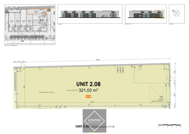 - Betonplinten: 14 cm dikte onder cellenbetonpanelen tussenwanden units – geïsoleerd (10cm PIR) en 28cm dikte onder metalen sandwichpanelen achtergevel en onder buitenschrijnwerk langs voor -en eventuele zijgevels.