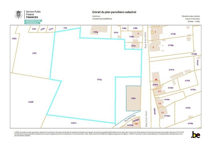 Magnifique terrain en partie en zone à bâtir et en zone agricole d'une superficie d'environs 1,15 hectare avec 40m de façade à rue. Le terrain est situé à Gonrieux sur la commune de Couvin. A découvrir sans tarder ! Faire offre à partir de 99.000€ sous réserve d'acceptation des propriétaires. Informations indicatives et non contractuelles.