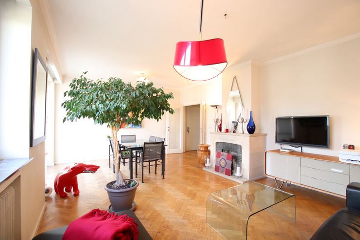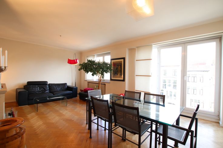 /+\ 94 m² offering: entrance hall + cupboard, wide living room (30,26 m2) with decorative fireplace in pierre, fully fitted kitchen (gas hob, hood, multifunctional oven, microwave oven, dishwasher, fridge-freezer and location for washing machine) with the access to the balcony, night hall, 2 bedrooms (10,20 m2 et 13,94 m2), WC, bathroom (bath and washbasin). A cellar with reinforced door.