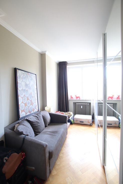 /+\ Located equidistant from the Place Vanderkindere and Parvis Saint-Pierre, on 3rd floor with lift of beautiful 1951 residence very well maintained, comfortable and LUMINOUS CHARACTER apartment with lovely UNOBSTRUCTED VIEWS to the front and the rear. Double facing: E and W.