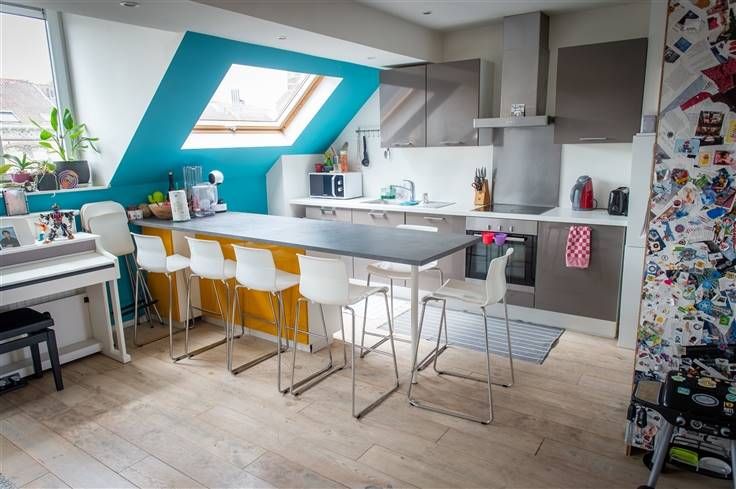 Sorry er is geen nederlandse vertaling beschikbaar. Ixelles (Proche du bois de la Cambre): Dans un immeuble de 4 appartements entièrement rénové en 2014 (également rénovation des techniques de l'immeuble), Mejama Real Estate vous propose ce petit bijoux de +/-92m² en duplex, composé d'un beau hall d'entrée avec vue sur le living et sa salle-à-manger + cuisine équipée de type "USA" pour une superficie de +/- 40m², une chambre avec sa salle-de-douche intégrée de +/- 15m², un WC séparé et terrasse arrière de +/- 6m². Un bel escalier vous mène vers une deuxième chambre avec sa salle-de-bain intégrée et WC (+/- 19m²) ... PEB D-, Électricité conforme, châssis double vitrage...Acte de base en cours d'élaboration pour une petite copropriété avec peu de charges. Pour infos et visite: .0496 122 123 info@mejama.be www.mejama.be