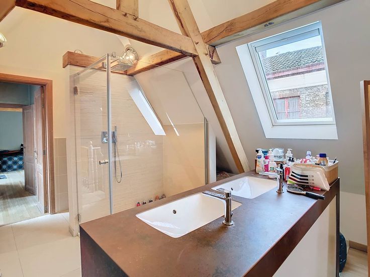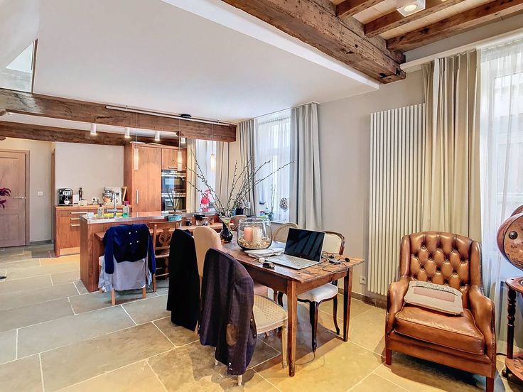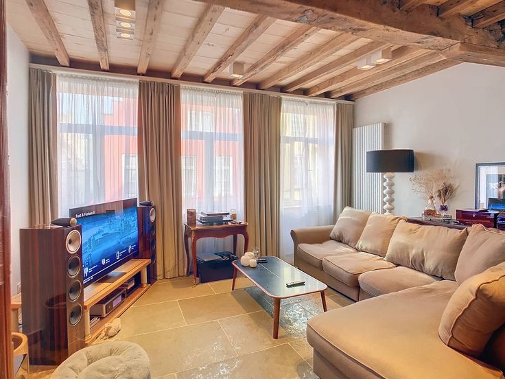 Lichtrijke duplex te huur in het centrum van Brugge. Het appartement beschikt over 2 slaapkamers en een zonnig terras. Als bijkomende troef hebt u de mogelijkheid om een staanplaats in de buurt bij te huren.De authentieke houten balken zorgen voor gezelligheid en sfeer, zowel op het gelijkvloers als op de eerste verdieping. Indeling:-1°V.: inkom met toilet - berging met aansluiting voor wasmachine - woonkamer (55,5m²) met open keuken die is voorzien van een oven, microgolf, inductiekookplaat, frigo met diepvries en vaatwasser.- 2°V.: slaapkamer 1 (16m²) met aansluitend terras - badkamer (3,5m²) met douche, lavabo en toilet - slaapkamer 2 met open badkamer met dubbele lavabo, toilet en inloopdouche.- Huurprijs: € 1.200,00 per maand- Geen gem. kosten- Mogelijkheid om staanplaats in de buurt te huren