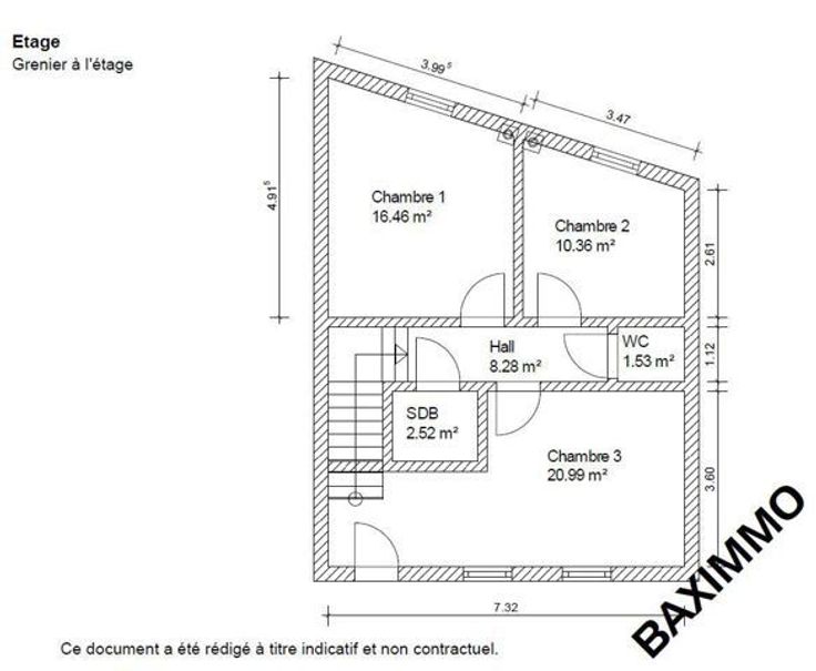 2ième Etage : Grenier aménageable.