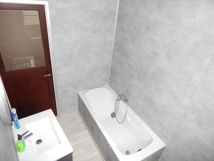 Composition du haut : 3 chambres, salle de bain avec baignoire, évier et WC.
