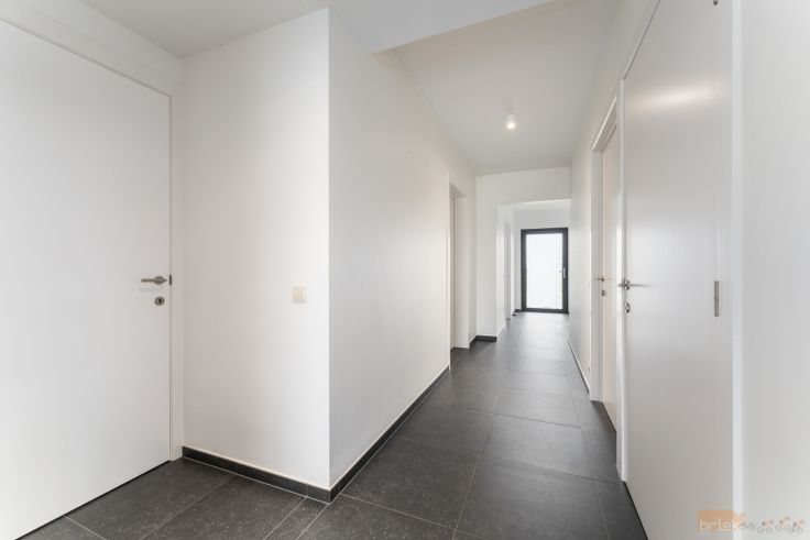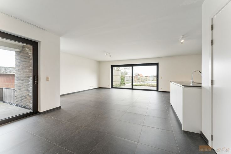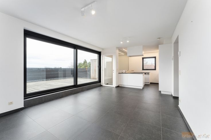 Ook hier kom je via de inkomhal in de woonkamer met open keuken, een groot schuifraam zorgt voor optimale lichtinval en geeft onmiddellijk toegang tot het zonneterras, dat zich uitstrekt over de volle breedte van de leefruimte. er zi...