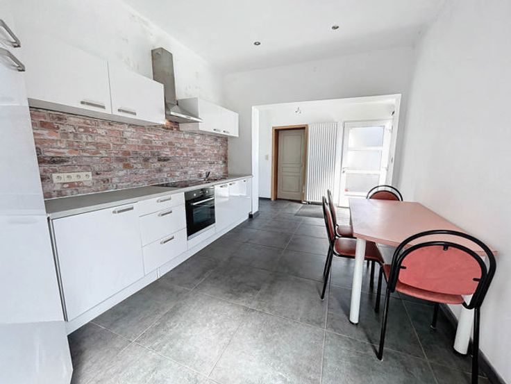 L’agence immobilière STRAZZERI’MMO vous présente cette agréable maison 3 façades rénovée et habitable de suite située à Trazegnies, comprenant 4 ch et jardin, proche de toutes commodités (transports, commerces, écoles,..). Emplacement stratégique bénéficiant d’un accès aisé en voiture et rapide vers les grands axes. Composition au rez : salle à manger (16m2), salon (16m2) avec feu au bois, cuisine avec espace repas (18m2) comprenant four, taque, hotte, lave-vaisselle, évier, frigo, congélateur, SDB (7m2) comprenant meuble-lavabo, WC, bain, coin buanderie. A l’étage : pallier vers 2 ch (16 et 17m2). Combles : pallier vers 2 ch (2x12m2). Pour le rangement, cave en sous-sol avec coin chaufferie et grenier au-dessus de la SDB. Ext. : terrasse, cour et jardin avec remise et vue dégagée sur les champs à l’arrière. FAIRE OFFRE > 209.000 EUROS, sous réserve d’acceptation des propriétaires. Divers : chassis PVC et BOIS DV (1 volet), cc gaz (compteur actuellement fermé) et poele au bois, 14 panneaux photov. et boiler thermodynamique, alarme, électricité conforme ! PEB cat. « E » 350kWh/m2.an n°20240718003899. RC 342 EUR (poss. de réd. droits d’enreg. à 6%). Contenance totale au sol (maison et jardin), 410m2. Surface selon PEB (plancher) : 169m2. Descriptif à titre informatif et non contractuel.