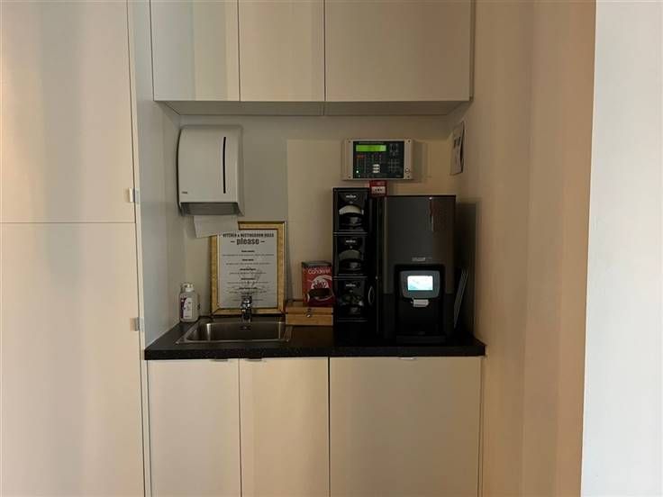 De inrichting bestaat telkens uit bureaus, bureaustoelen, ladekast onder de bureaus en grote archiefkasten.