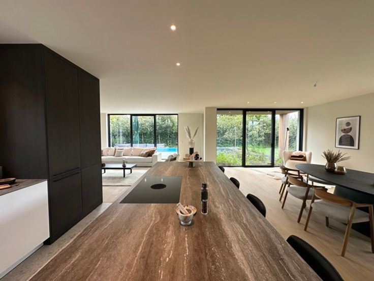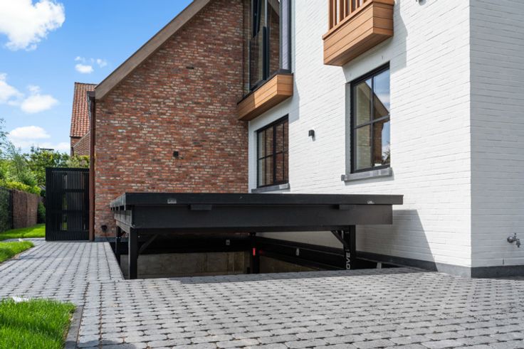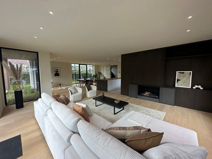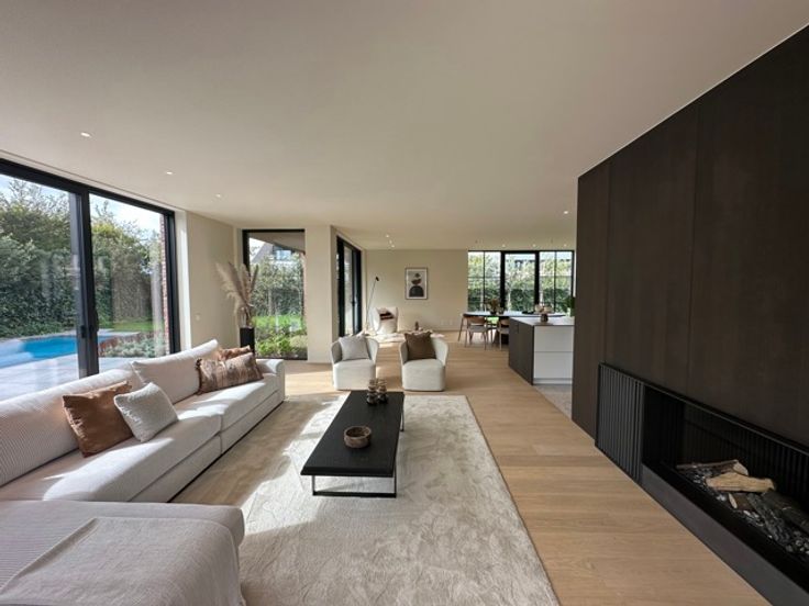 Alleenstaande nieuwbouw villa te koop gelegen op een perfect georiënteerd terrein van ca. 649m² , uiterst rustig gelegen in een residentiële villawijk aan de rand van het Zoute, op fietsafstand van het centrum en het strand. Indeling van de villa: Ruime inkomhal met personenlift (-1 tot +1). Lichtrijke leefruimte met eet- en zitplaats voorzien van een gashaard, uitgevend op het zonnige terras. Open, volledig geïnstalleerde keuken met toegang tot een berging. Gastentoilet. De villa is voorzien van een prachtig aangelegde tuin met zwembad, genietend van een perfecte oriëntatie. Op de eerste verdieping bevinden zich drie volwaardige slaapkamers met elk een ensuite bad- of douchekamer met toilet. Eén slaapkamer geeft uit op een zuidgericht terras aan de achterzijde, dewelke een aangenaam zicht heeft op de tuin. Slaapkamer/Kantoorruimte aan de voorzijde. Op de tweede verdieping bevinden zich een volwaardige slaapkamer met ensuite douchekamer, alsook een grote polyvalente ruimte van ca. 44 m² met tal van mogelijkheden (slaapkamer, fitnessruimte, speelkamer, ...). De villa heeft een inpandige garage, dewelke te bereiken is via een autolift en plaats biedt voor 4 wagens en meerdere fietsen, voorzien van 3 oplaadpunten. Daarnaast vindt men hier nog een wijnkelder en berging, alsook een technische ruimte. Er zijn eveneens meerdere staanplaatsen voor de villa voorzien. Daarnaast is er voorziening van domotica, alarm, elektrische toegangspoort, tuinberegening, zonnepanelen, ... Bet