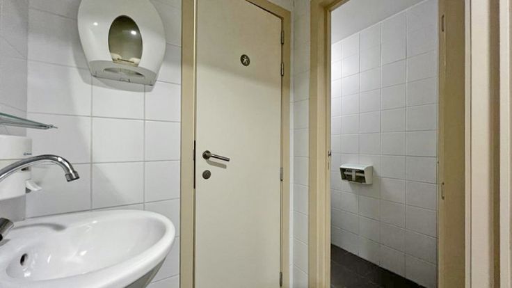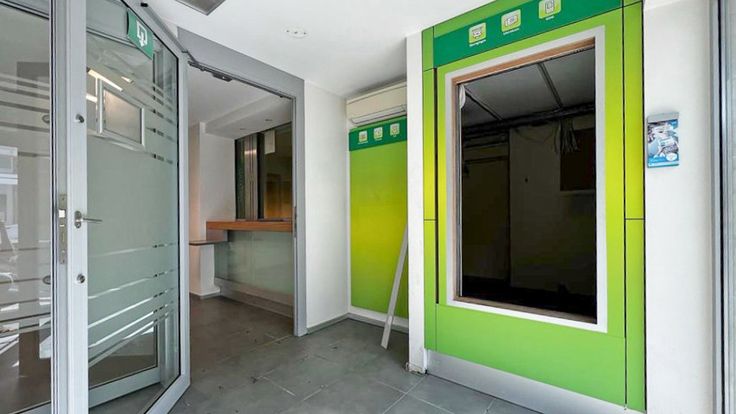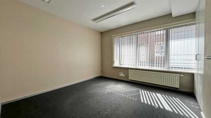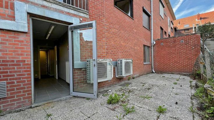 Voormalig bankkantoor van 115 m2, gelegen aan de rechterkant bij de ingang van het gebouw, gezien vanaf de straat. Het bestaat uit: een ontvangsthal, een lokettenruimte (de automaat is verwijderd), een openbare gang, 2 kantoren, een kluisruimte (bruikbaar als kluis), een keuken, 2 toiletten, een berging en een buitenruimte van ongeveer 30 m2. Centrale verwarming op gas. Het gebouw bestaat uit 8 appartementen en garages. Mogelijkheid vrij beroep.