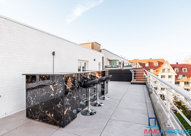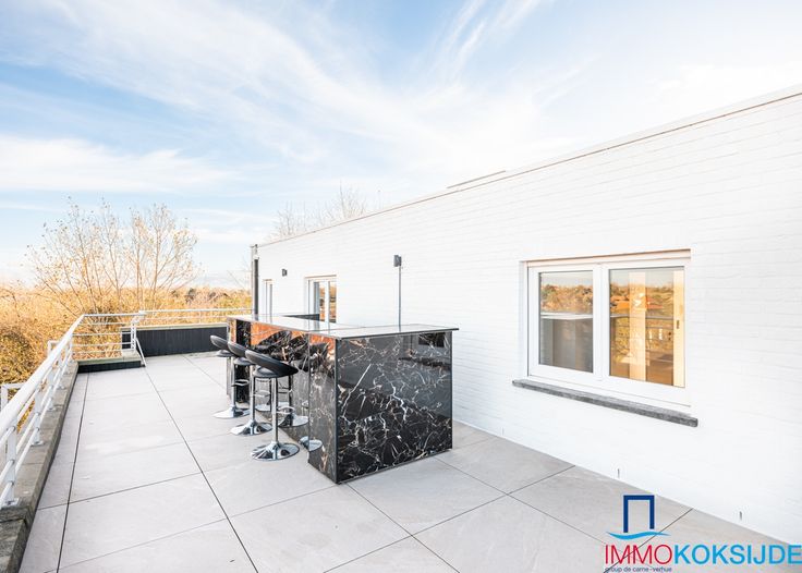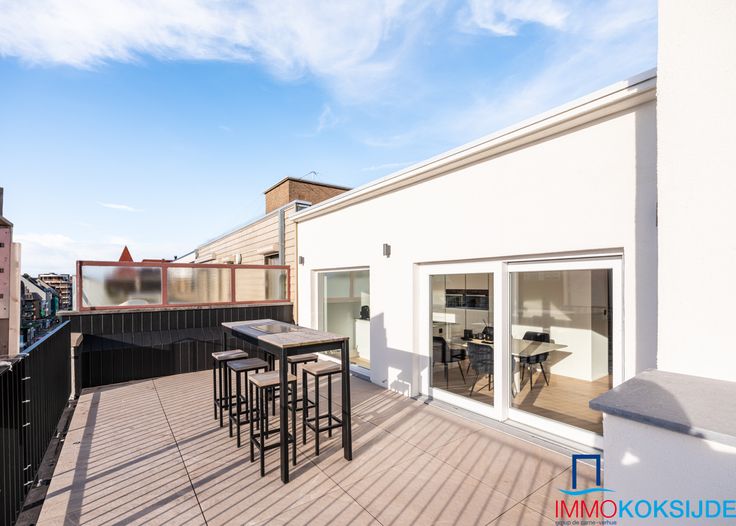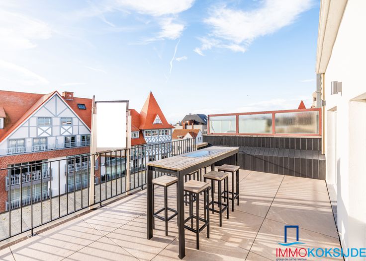 Sint-Idesbald, Residentie Molière, prachtig en luxueus gerenoveerd appartement met hoogstaande afwerking en zonnige terrassen. Bestaande uit: inkomhall, lichtrijke en ruime woonkamer met toegang tot één van de zonnige terrassen met mooi uitzicht, moderne ingerichte open keuken voorzien van alle toestellen, salon, slaapkamer met ingemaakte kasten en ensuite badkamer die bestaat uit ingebouwde wastafel, inloopdouche en toilet, afzonderlijke berging met aansluiting wasmachine en droogkast, afzonderlijk toilet en tweede slaapkamer met ingemaakte kasten en inloopdouche en wastafel. Via deze slaapkamer toegang tot het 2e achterliggende terras. Het appartement is volledig in parket en voorzien van individuele centrale verwarming op aardgas. Gemeenschappelijke fietsenberging. Het ruime penthouse (100m²) is in perfecte staat en is gelegen in het commerciële centrum op enkele stappen van zee. Verkoop onder registratierechten! Renovatieplicht: nee