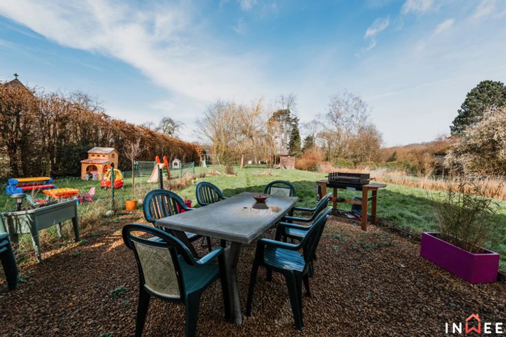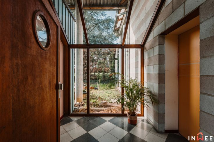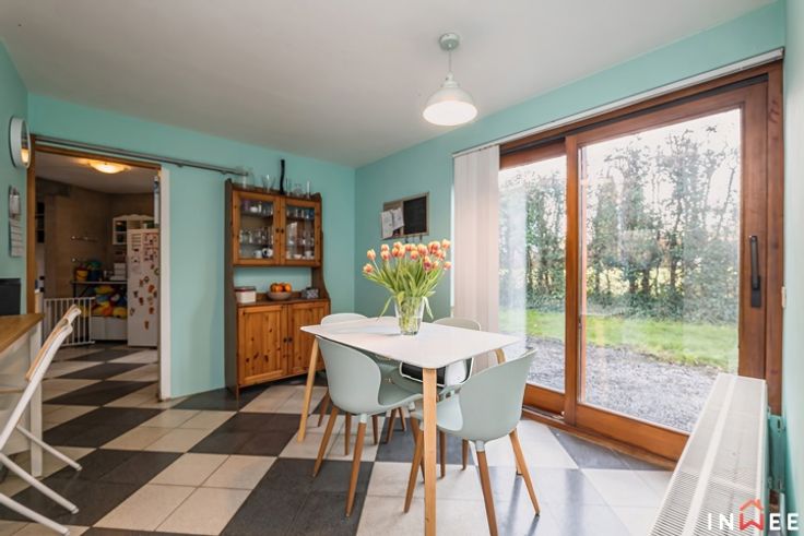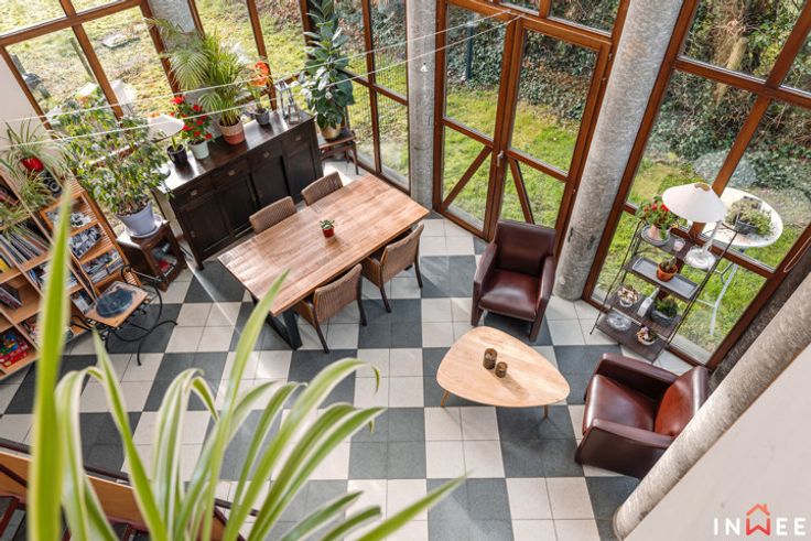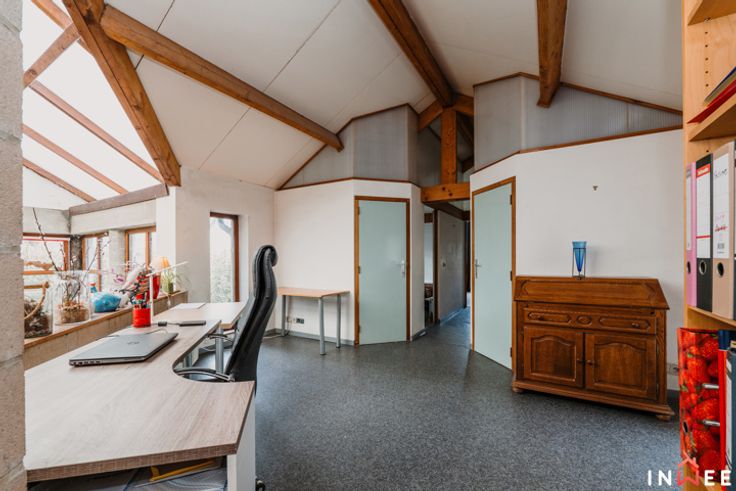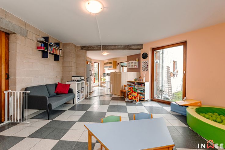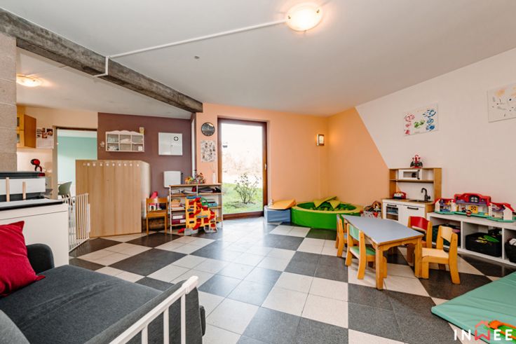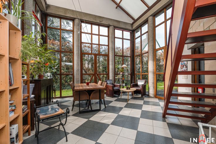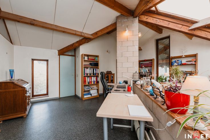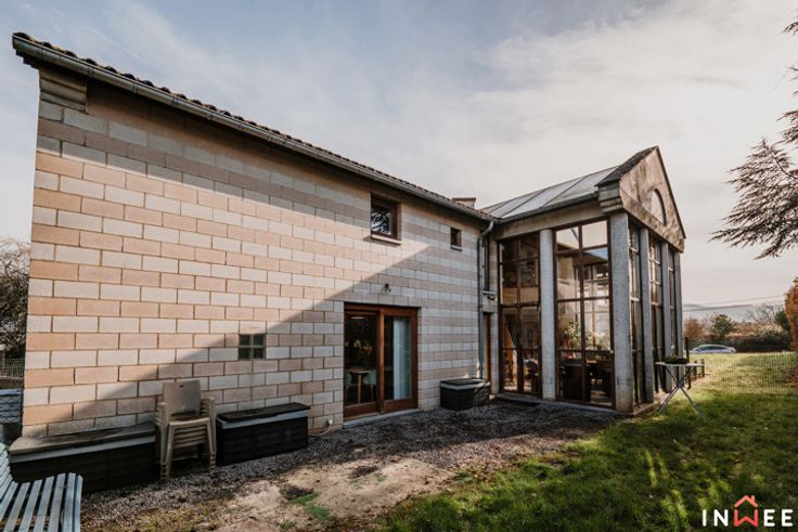 RDV sur www.inwee.be pour plus de photos, vidéo et plans ! Votre agent : Emeline | 0471/49.68.98 ou emeline@inwee.be. Pour fixer un rendez-vous de visite, c'est ICI sur notre agenda en ligne : https://inwee.calendoc.net/ En catimini, dans un quartier calme de Wépion, vous remarquerez sans doute l'architecture unique de ce bien. Si vous recherchez un beau terrain (min. 14ares), du potentiel et la possibilité d'établir une profession libérale, cette magnifique maison est faite pour vous. Bâtie en 1987, atypique et intimiste, elle a été pensée intelligement ; bien qu'à moderniser (salle de bain, cuisine à rénover, etc.), elle est le reflet très actuel des attentes de beaucoup d'entre nous. L'aspect pratique d'abord, avec 210m² habitables, bcp de rangements et l'ancien garage en devanture, elle pourra aisément comporter un espace professionnel (actuellement crèche). Le hall d'accueil vitré donne accès aux espaces privés, axés sur la convivialité et la détente. Véritable coeur de cette demeure, la majestueuse véranda permet de respirer la nature en toutes saisons. Ici, travailler et partager au quotidien devient un plaisir, que cela soit au salon ou dans la cuisine donnant accès aux multiples terrasses et parties du terrain (potager...). A l'étage, on découvre une grande mezzaninne distribuant 2 belles chambres, 2 salles d'eau et 1 dressing, totalement modulables. C'est sûr, ce bien unique comporte un potentiel de modernisation inifini (poss. prof. libérale, plain pied...) !