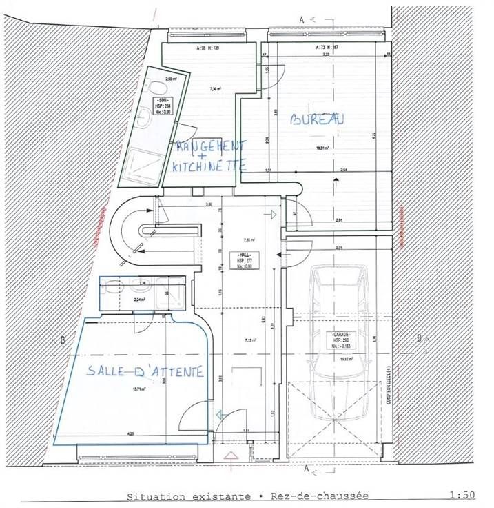 Sorry er is geen nederlandse vertaling beschikbaar. Maison de rapport actuellement composée de 3 appartements à reconfigurer. Composition selon projet : Sous-sol: Hall, 5 caves. Jardin. Rez de chaussée: Hall d'entrée, wc, salle d'attente avec wc, bureau, cuisine. Garage. 1er étage: Hall d'entrée, wc, 3 chambres, salle de bain. 2e étage: Hall, wc, cuisine, arrière cuisine, salle à manger, salon, débarras, bureau. Terrasse. Détails techniques: Châssis PVC double vitrage. Chaudière gaz collective (2012) avec calorimètres. Compteurs électriques individuels. 4 décompteurs d'eau. Boilers électriques. PEB rez arrière n°20230302011758: classe D (Espec: 286 kWh/m².an - Etotale: 10 313 kWh/an). PEB 1er étage n°20141010011119 : classe D (Espec: 284 kWh/m².an - Etotale: 23.941 kWh/an). PEB 2e étage n° 20230302010844 : classe E (Espec: 380 kWh/m².an - Etotale: 31 067 kWh/an). Caractéristiques: Maison de rapport actuellement composée de 3 appartements à reconfigurer en duplex (1er /2ème) selon permis d'urbanisme délivré en 2024 + rez de bureau avec salle d'attente. Idéal pour profession libérale/médicale. Deux des caves situées à l'arrière du bâtiment et donnant sur le jardin peuvent faire l'objet d'un aménagement en bureau/ pièces supplémentaires. Situation idéale à proximité des commerces et services ( gare, bus écoles...). Plans d'architecte et permis disponibles à l'agence.