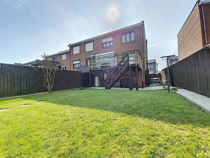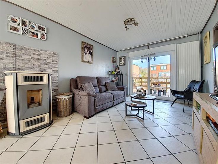 Mouscron - Dans un clos au calme, charmante maison semi-mitoyenne avec garage. - Rez-de-chaussée : hall d'entrée, buanderie, garage avec porte sectionnelle motorisée pour une voiture. - 1er étage : hall, toilettes + coin vestiaire, living de 27m² avec baie vitrée donnant sur la terrasse, cuisine équipée. - 2ème étage : hall de nuit, salle de bains avec baignoire, trois chambres (15, 12 et 7m²). - Extérieur : place de parking et jardinet devant la maison, beau jardin avec abris, terrasse en bois. Châssis PVC double vitrage, chauffage central au gaz, poêle à pellet, porte de garage motorisée. Maison très bien entretenue avec beaucoup de qualités. Aspects énergétiques: PEB n° 20210329007788 - Espec: 306 kWh/m².an - Etotale: 46 721kWh/an