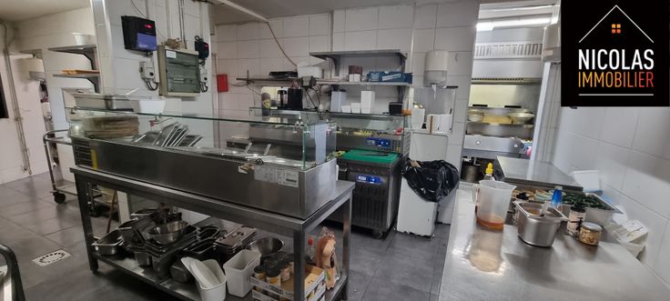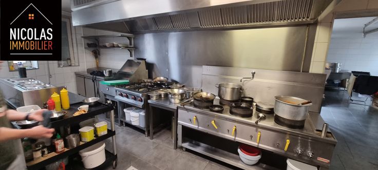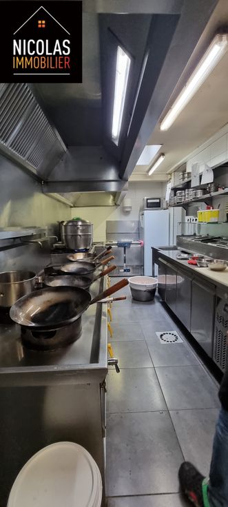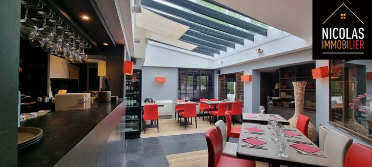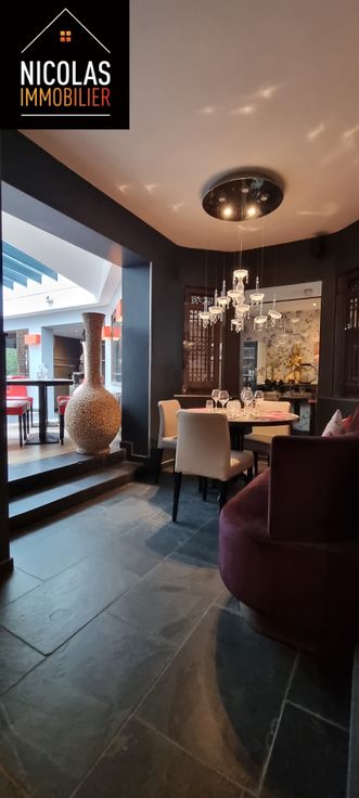 👉 Rez-de-chaussée commercial de +/- 350 m² comprenant le bar, les salles de restaurant, cuisine, chambre froide, sanitaire hommes/femmes.