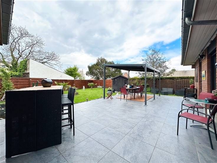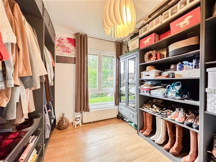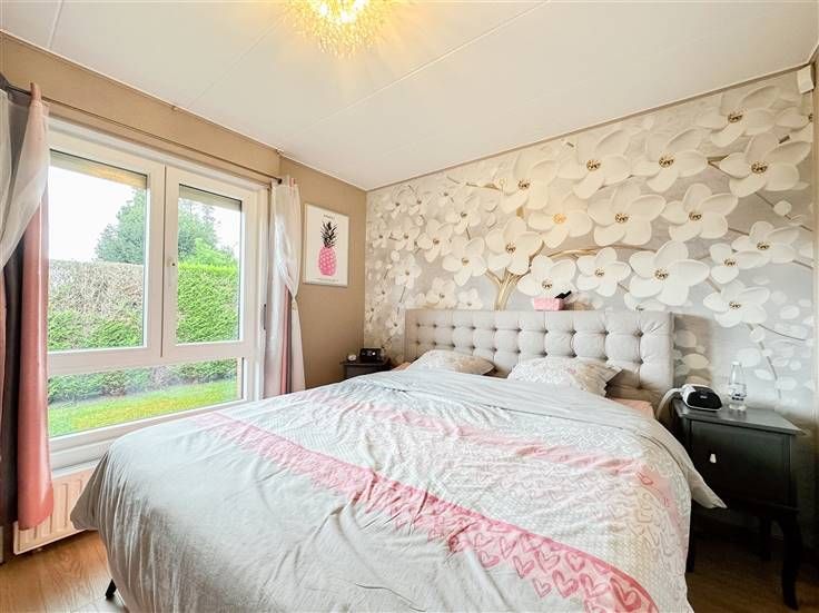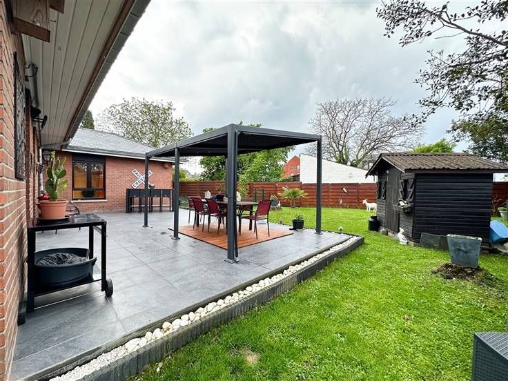 Maison en parfait état se composant comme suit : hall d’entrée, W.C. séparé, séjour avec insert au bois, cuisine équipée, salle de douches avec W.C. et 3 chambres. Combles non aménageables, accessibles par trappe située dans le garage. A l'arrière de la maison, vous trouverez un beau jardin sans vis-à-vis d’environ 4,5 ares avec une spacieuse terrasse avec pergola, étang, et abri de jardin. Technique : Chauffage central au gaz, châssis triple vitrage avec volets, climatisation récente, système d’alarme