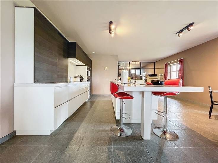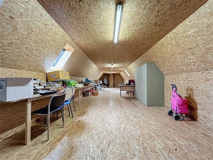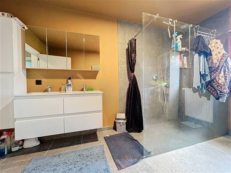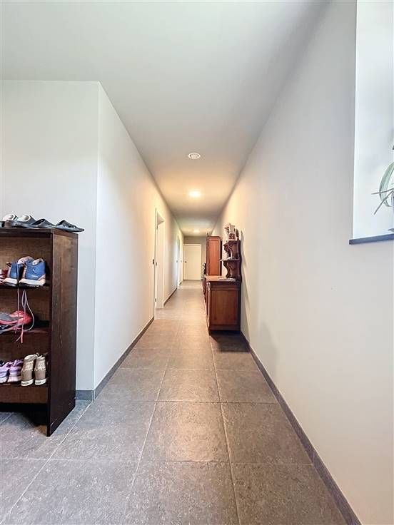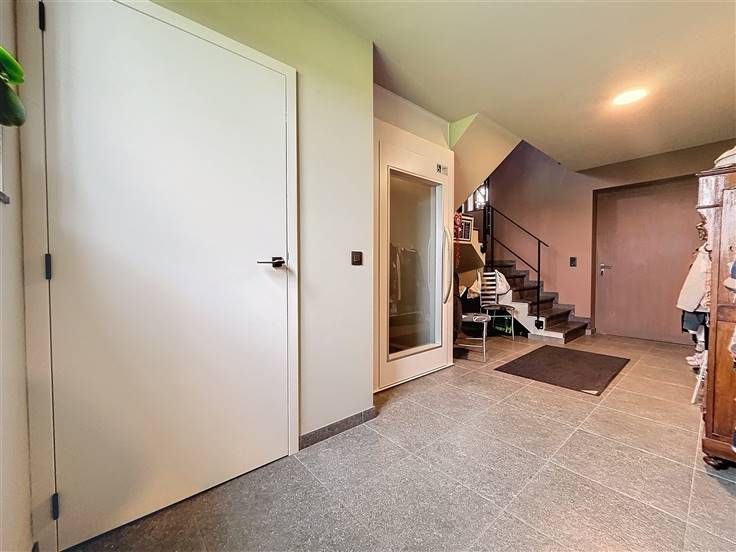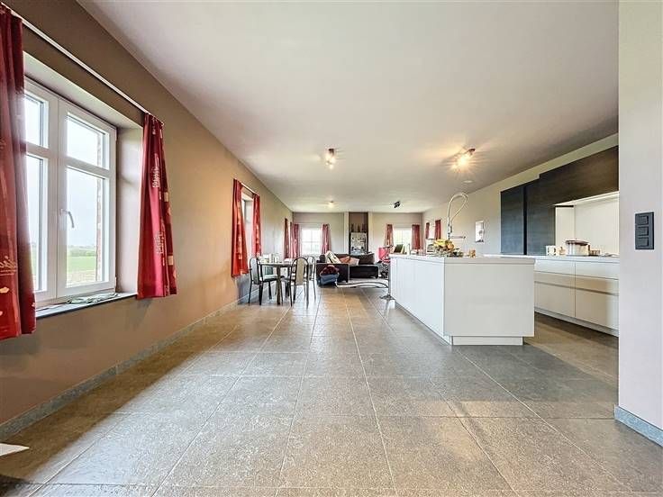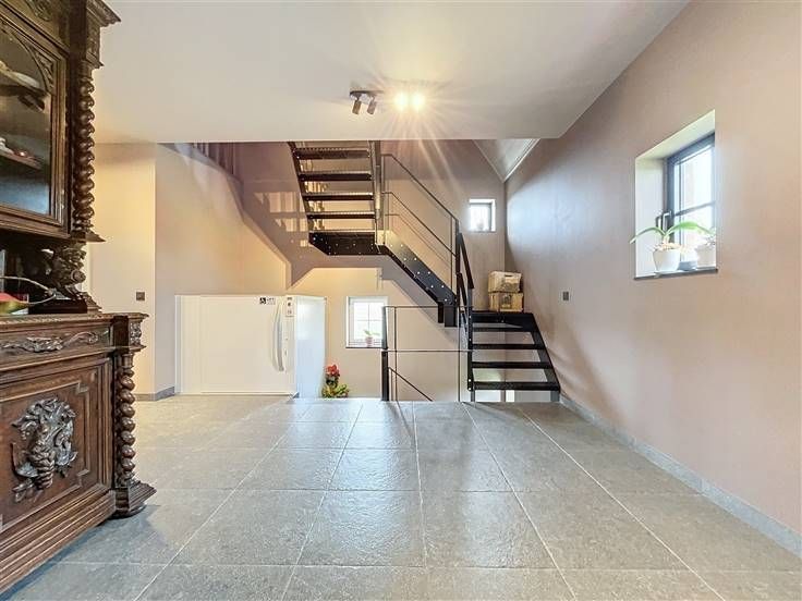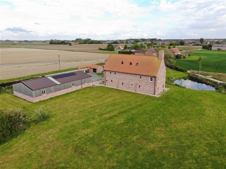 OPENDEUR 12/10 van 10u30 tot 11u30 Modern, instapklaar landhuis met loods en weiland op 21.450m²! De woning is als volgt ingedeeld: op het gelijkvloers vinden we een ruime inkomhal met apart toilet, 3 slaapkamers, een ingerichte badkamer met inloopdouche en dubbele lavabo en de ruime zuidgerichte tuin met vijver. Op de eerste verdieping (ook mogelijk te bereiken via lift) is een brede hal met gastentoilet, de lichtrijke leefruimte met open, ingerichte keuken en ruime berging en een vaste trap naar de zolderkamer/hobbyruimte. Extra's: - Loods van ± 225m² - Weide met grond op 10.554m² - Energiezuinig (EPC label A) - Ventilatiesysteem D - 16 zonnepanelen + zonneboiler - Vloerverwarming .