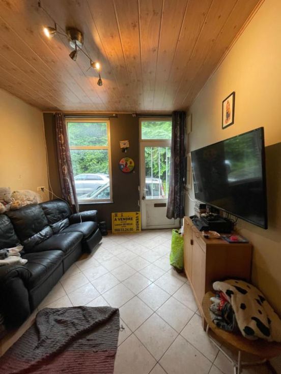 SOUS COMPROMIS Bonne maison d’habitation 2 façades avec jardin. La maison se compose comme suit : - Au sous-sol : cave, compteur gaz. - Au rez-de-chaussée (en enfilade) : salon, salle à manger, (convecteur), cuisine ouverte équipée (évier, four, taques vitrocéramique, hotte, frigo, lave-vaisselle, micro-onde), coupole, salle de bains (baignoire-douche, water closet, lavabo). - Au premier étage : 2 chambres. - Au deuxième étage : 2 chambres. - Petit grenier - Double vitrage - Jardin - Terrasse - Annexe (buanderie) - Raccordement à l’égout Renseignements généraux : SUP : 2a 70ca RC : 369€ PEB : / Contrôle de l’installation électrique : conforme Réduction des droits d’enregistrement et abattement possibles sous condition