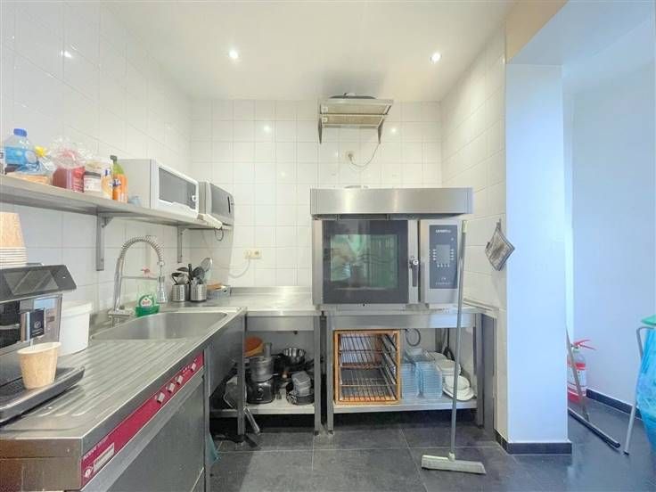 Le commerce s'étend sur deux niveaux. Le rez-de-chaussée abrite un espace ouvert qui comprend la sandwicherie et une cuisine entièrement équipée. Au sous-sol, une cave de 45m² est disponible offrant un espace de stockage supplémentaire, avec accès à une cour. Des toilettes sont disponibles à chaque étage pour plus de commodité.