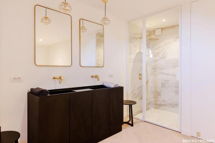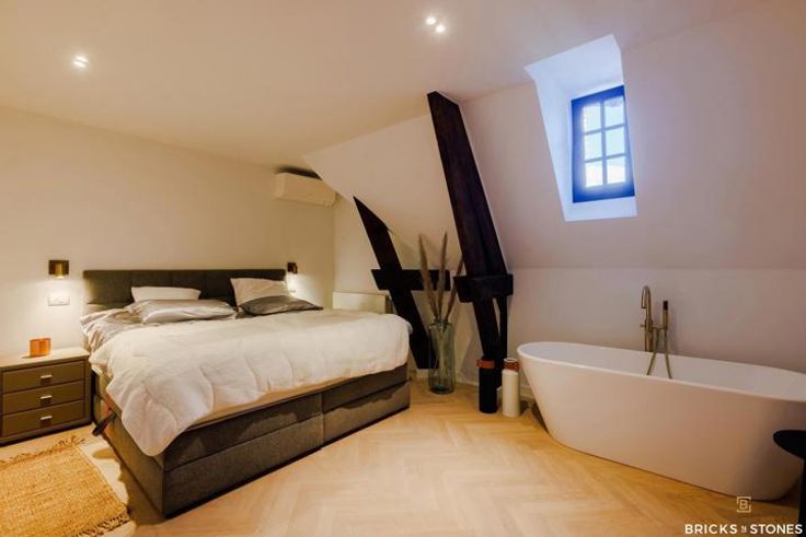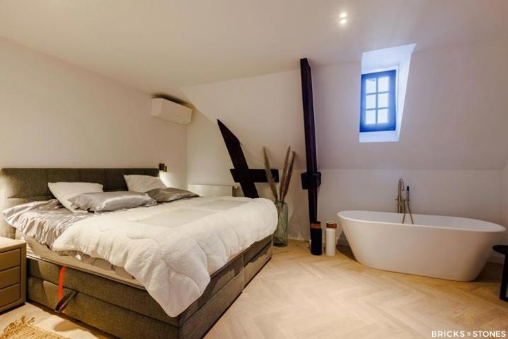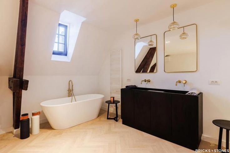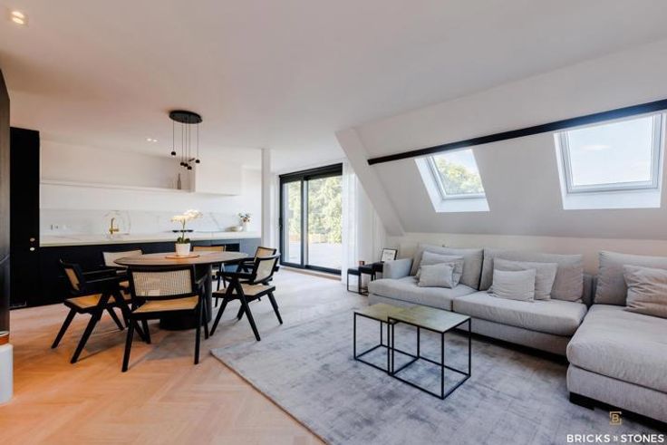 Villa appartement ‘The Attick’ bevindt zich op de twee bovenste verdiepingen van de kasteelvilla. Hier werden alle kostbare familiestukken bewaard. Bij het betreden van dit appartement voel je dat dit altijd een mythische plaats is geweest met een sterke geschiedenis. Men zegt weleens ‘als de muren konden spreken’, dat is hier zeker op zijn plaats. Dit unieke villa appartement reikt tot in de nok van het dak en wordt gekenmerkt door de originele houten balken. Dit prachtige duplex-appartement (A8) is gelegen op de tweede en derde verdieping. Inkomhal afgewerkt met prachtig maatwerk voor vestiaire en gastentoilet. Ruime woon- en leefruimte op een nieuwe visgraat parket. Door de grote raampartijen in de keuken genieten we van een groen zicht op het achtergelegen park én krijgen we toegang tot het zonnig terras (44m²). Dit wordt zorgvuldig vervaardigd uit tropisch hardhout, een zalige plek om te genieten van de nodige uren zon per dag ! De strakke geïnstalleerde, moderne open keuken nodigt uit om gezellig te kokkerellen en is voorzien van kwalitatieve AEG toestellen. Klassevol afgewerkt met een natuurstenen werkblad en design kraanwerk. Prachtige master suite beneden met hoog hotel-gevoel is voorzien van een en-suite badkamer met dubbele marmeren wastafel, inloopdouche én vrijstaand bad. Heerlijk om bij weg te dromen ! Op het verdiep nog 1 volwaardige slaapkamer met originele balken en ruimte voor maatwerk/dressing. Deze geeft toegang tot het tweede terras met zicht op de