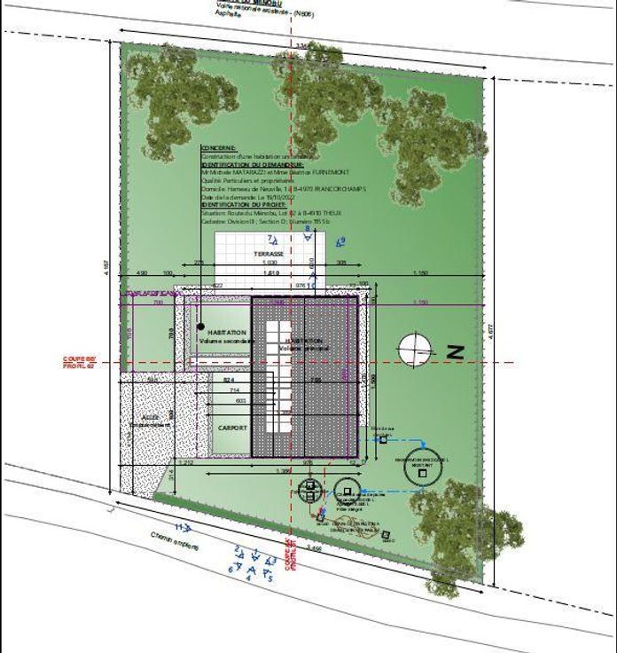 SUPERBE terrain à BATIR idéalement situé en lieudit "Les Chainays", route du Ménobu à 4910 THEUX (La Reid). Le bien bénéficie d'une orientation idéale S-O et est vendu avec un permis d'urbanisme obtenu en date du 20/04/2023 ,celui-ci permettant la construction d'une maison unifamiliale 4 façades. L'accès s'effectue par le chemin empierré du Bois Renard, accès pourvu d'un revêtement solide empierré et équipé en eau, électricité, télédistribution et en téléphonie. Identification cadastrale : Theux 63060 section D, numéro 1155B P0000, R.C. : 17,00 euros. Prix : 140.000,00 euros. Date de disponibilité : à l'acte. Techniques: zone faiblement habitée, zone d'assainissement autonome, hors zone inondable, zone d'habitat au plan de secteur, LOT 2 d' ement de 5 parcelles, citerne à eau de pluie (réserve permanente). Situation convoitée, opportunité exceptionnelle A SAISIR! Plans et permis consultables en l'étude NOTALIS (Guyot & Cremer) : 087/77.10.72