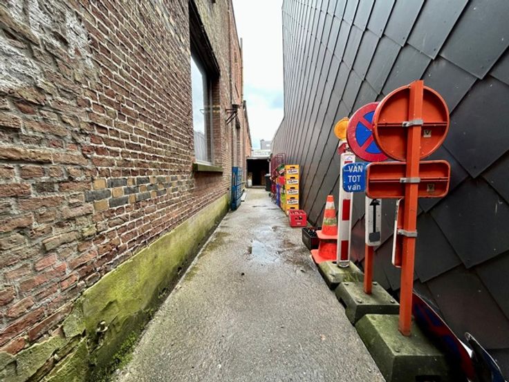 Het perceel grenst achteraan aan de straat, zodat er hier een toegangsweg en ruime parking gecreëerd kan worden.