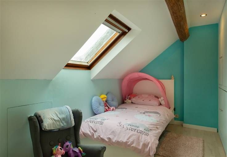 Zolderverdieping: nachthall, slaapkamer 2 (8m²) met ingebouwde kasten en slaapkamer 3 (9m²) met ingebouwde kasten.