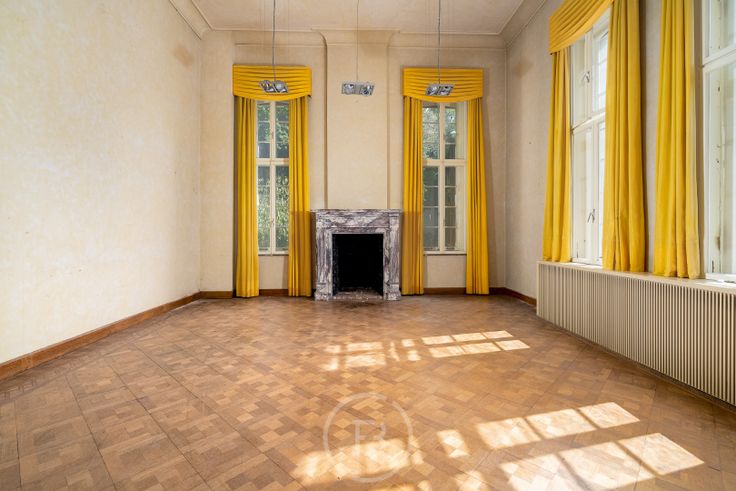 Het hoofdgebouw omvat op het gelijkvloers een royale inkomhal, bureel en drie authentieke salons.