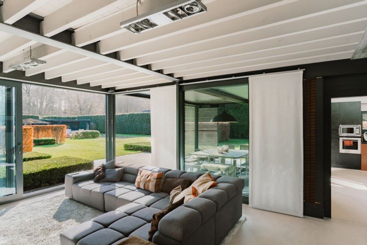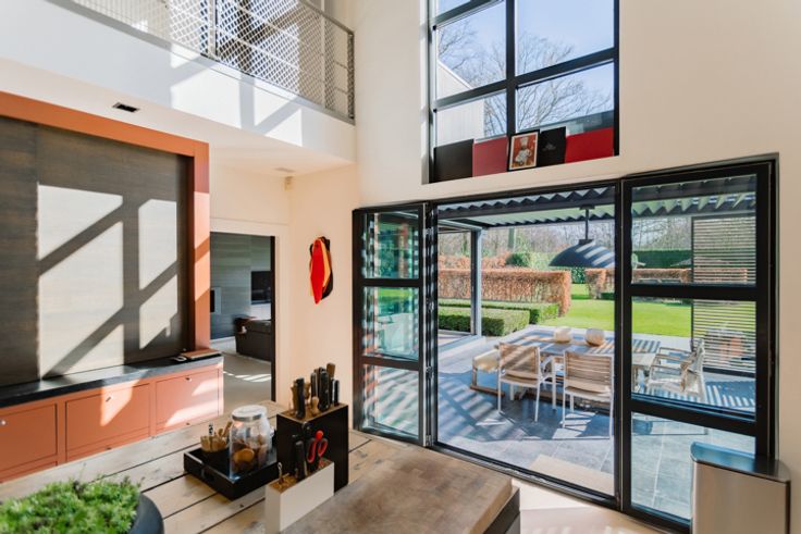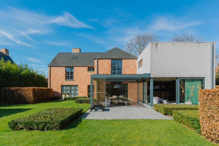Handige verbinding met de stad, openbaar vervoer en alle invalswegen en winkels vlakbij. Meteen voorbij de grote voordeur word je overspoeld door licht. Met dank aan de vele ramen die uitgeven op het groen in de tuin. Het hart van het huis is de leefkeuken. Gezellig voor een romantisch diner met twee, maar evengoed ruim genoeg om vele gasten te laten aperitieven. Ook op het gelijkvloers ligt de eetkamer en een aparte bureau/speelkamer. Vooraan vind je een grote berging met wasplaats, die een aparte ingang heeft: heel handig voor dagelijks gebruik! Twee open haarden, het gebruik van kwalitatieve materialen en de indeling in loftstyle maken van deze woonst grand luxe. Een grote meerwaarde is ook de aansluitende bar met klapdeur. Een heerlijke plek om herinneringen te maken met familie en vrienden. Op de 1ste verdieping zijn er 5 slaapkamers en liefst 3 badkamers. Twee apart en eentje en suite bij de master bedroom, die ook een dressing heeft. Een verdieping hoger ligt een ruime zolder. De buitenruimte is al even hemels. Praktisch dankzij de ruime oprit, grote opbergruimte voor fietsen, containers en hout. Maar ook high end door het (verwarmde) terras en het zalige zwembad, met overdekte chillplek. In deze netjes onderhouden woning met tijdloos interieur is het zowel binnen als buiten zalig toeven. De lay-out van de woning is lichtrijk en open. Tegelijk is er genoeg privacy om alle bewoners hun eigen plekje te laten vinden.