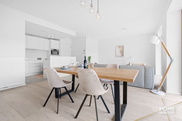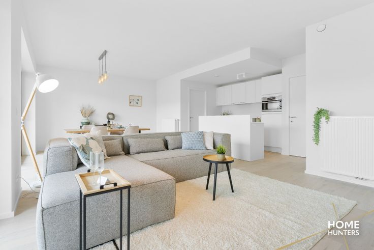 Ontdek dit schitterend ingerichte appartement van 89 m² met een terras van maar liefst 16 m². In dit appartement hebben ze gekozen voor warme accenten die een waar thuisgevoel creëren. De uitnodigende sfeer wordt benadrukt door zorgvuldig gekozen kleuren en materialen, die samen een harmonieuze en gezellige leefruimte vormen. Elke kamer ademt comfort en stijl, waardoor het appartement een ideale plek is om te ontspannen en te genieten van het leven. Of je nu op zoek bent naar een plek om te wonen of een investeringsmogelijkheid, dit appartement biedt alles wat je nodig hebt voor een comfortabel en luxueus bestaan. Hoogtepunten: *Perfecte Ligging: Midden in het centrum, maar omgeven door rustgevende binnentuinen. *Ruim Terras: 16 m² groot, ideaal voor zonnige middagen en avonden. *Uitstekende Voorzieningen: Ondergrondse parkeergarage met plaats voor 130 auto's (mogelijkheid aankopen staandplaats of garage) en een handige fietsenstalling met lift (gratis te gebruiken). *Modern Comfort: Voorzien van uitstekende isolatie, zonnepanelen en regenwaterrecuperatie voor een duurzaam en comfortabel leven. *Ruimte en Groen: Diverse open ruimtes met verhardingen, waterpartijen en groene tuinen zorgen voor een aangename leefomgeving. Architectonisch Meesterwerk: *Ontwerp: Drie torens die boven drie bouwlagen uitsteken, ontworpen door de gerenommeerde architectenbureaus Robbrecht en Daem en URA Architects. Stijl: Sober modern met elementen zoals bakstenen, houten ramen en balustrade
