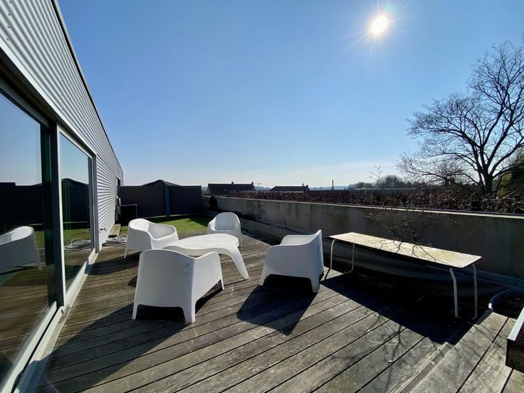 Deze kantoorruimte bestaat uit volgende indeling: inkom, kantoorruimte, vergaderzaal, praktische berging, polyvalente ruimte en toiletten. Daarbij is er nog een RUIM, ZUID-GEORÏENTEERD DAKTERRAS ter beschikking.